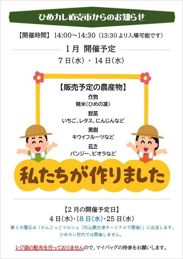 令和7年度ひめカレ直売市、1月の開催日をお知らせします