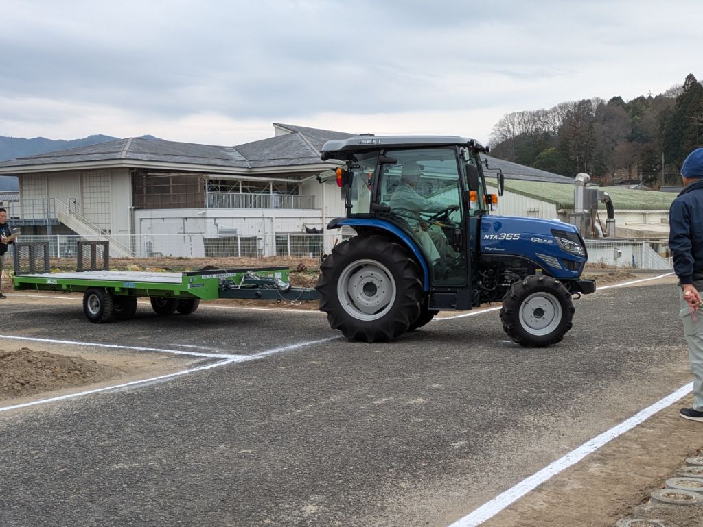 技能競技大会では、トラクター始業点検、けん引、フォークリフト運転の3種目を実施、日頃の農作業技術を活かし、安全かつ正確な作業等の手順を確認しながら競技を行いました。